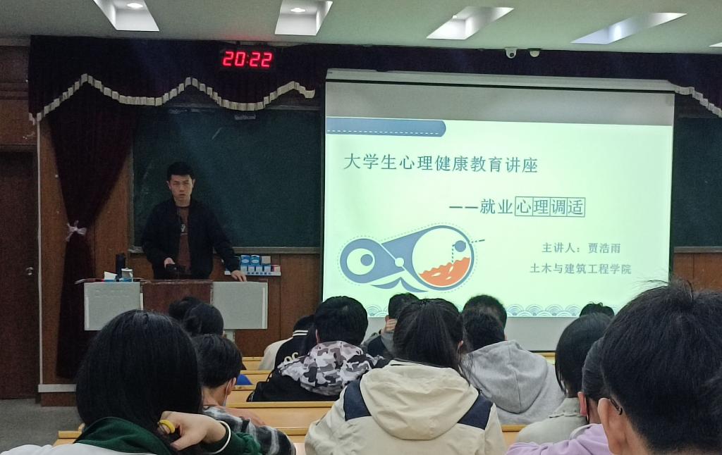 为帮助太阳成集团122ccvip毕业班学生克服就业心理障碍,缓解学生就业焦虑情绪和心理压力,树立正确的择业观和就业心态。5月15日,学院在屏风校区9401教室组织了关于“就业心调适,未来不迷茫”的专题心理健康讲座。讲座由学院贾浩雨老师主持,学院2018级500多名应届毕业生参加。