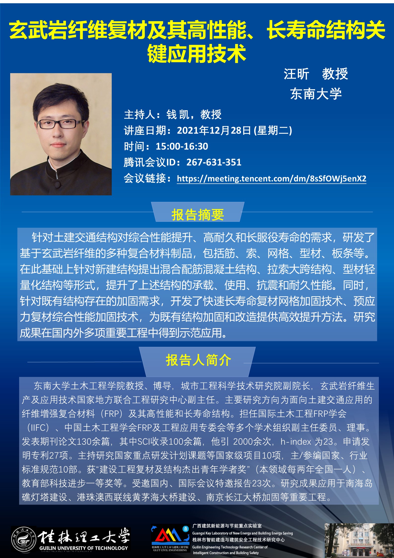 东南大学汪昕教授学术报告会 - 预通知
