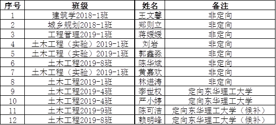 根据《桂林理工大学推荐优秀应届本科毕业生免试攻读硕士学位研究生工作管理办法》(桂理工研〔2021〕10号)文件要求和《关于做好桂林理工大学2023年推荐优秀应届本科毕业生免试攻读硕士学位研究生工作的通知》、《土木与建筑工程学院2023年推荐免试攻读硕士学位研究生指标分配及推荐条件细则》,经学生个人申请,学院推免生遴选工作领导小组审核确定,拟推荐以下同学免试攻读硕士学位研究生,现予以公示。