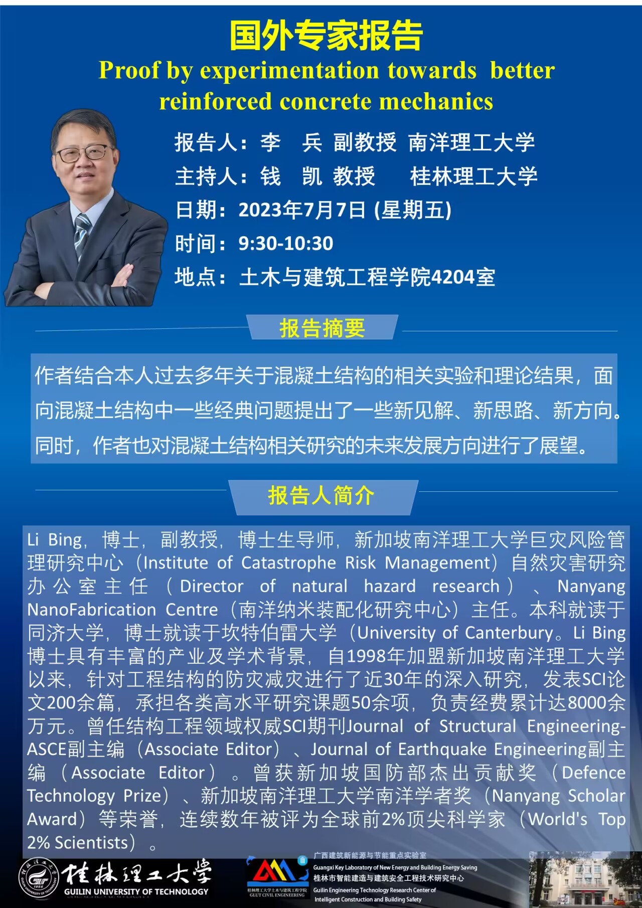 【学术讲座预告】南洋理工大学李兵副教授学术报告(第一场)