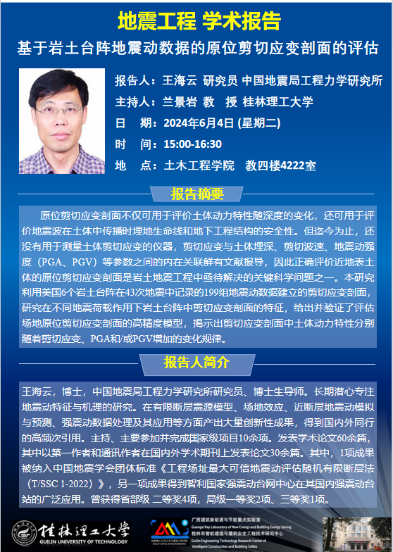 【学术讲座预告】中国地震局工程力学研究所王海云研究员学术报告