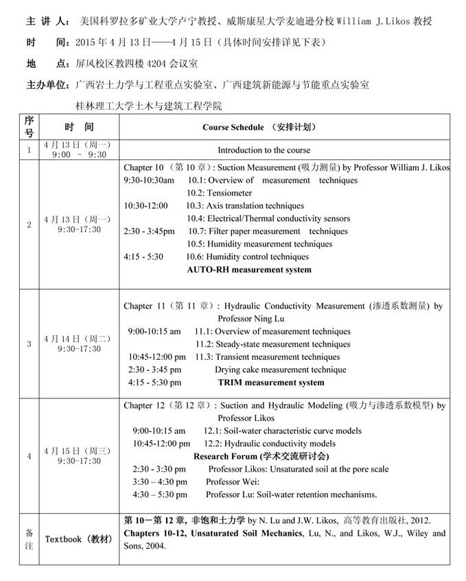 讲座通知:实验非饱和土力学系列学术报告会