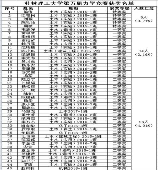 获奖名单见附件:桂林理工大学第五届力学竞赛获奖名单.xls