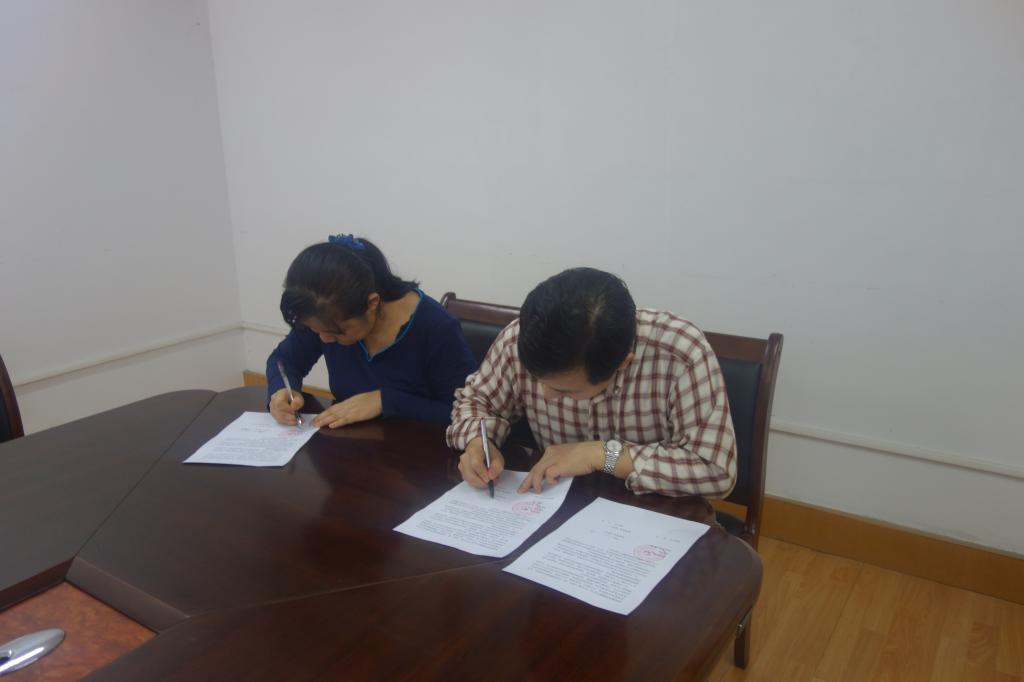 会上,熊英书记分别与教工支部书记代表刘声炜老师和教工支部支委代表林宝唐老师现场签订了桂林理工大学教工党支部2016年党风廉政建设责任状。