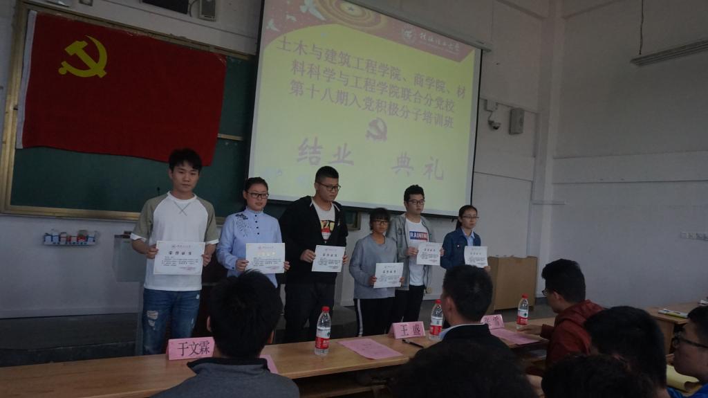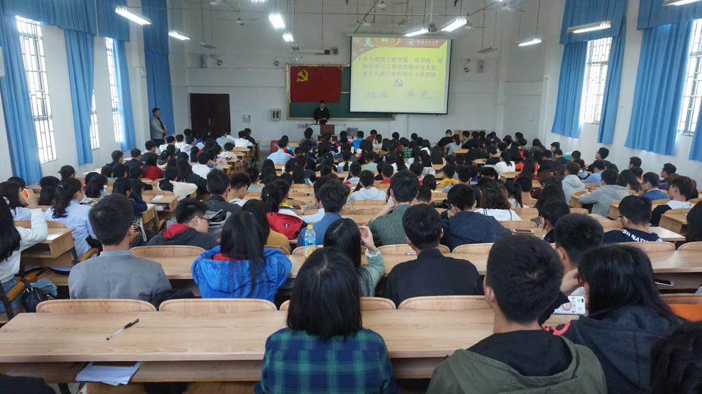 2018年4月17日中午,土建学院、商学院、材料学院联合分党校第十八期入党积极分子培训班(雁山校区)结业典礼在06207教室举行。土建太阳成集团122ccvip副书记王盛、材料学院辅导员于文霖、商学院辅导员张雪、土建学院辅导员马文硕出席了结业典礼。参加结业典礼的还有入党积极分子学习班的233名学员。
