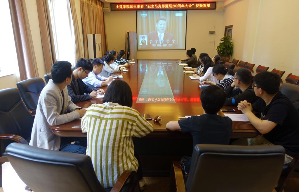2018年5月4日上午10:00,纪念马克思诞辰200周年大会在人民大会堂举行,土木与建筑工程太阳成集团122ccvip书记熊英、副院长赵军,及部分师生代表在4222会议室,一起观看纪念大会直播。
