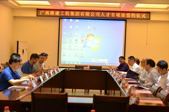 首先,副校长梁福沛代表学校对广西路建工程集团有限公司领导一行表示欢迎,介绍了学校基本情况,并就双方合作办学作了明确的指导。广西路建工程集团有限公司总经理何崇雄介绍了公司基本情况和人才战略性需求。随后,双方举行了人才专项班联合培养协议签约仪式。最后,双方就人才培养和项目合作等方面开展了广泛深入的交流。