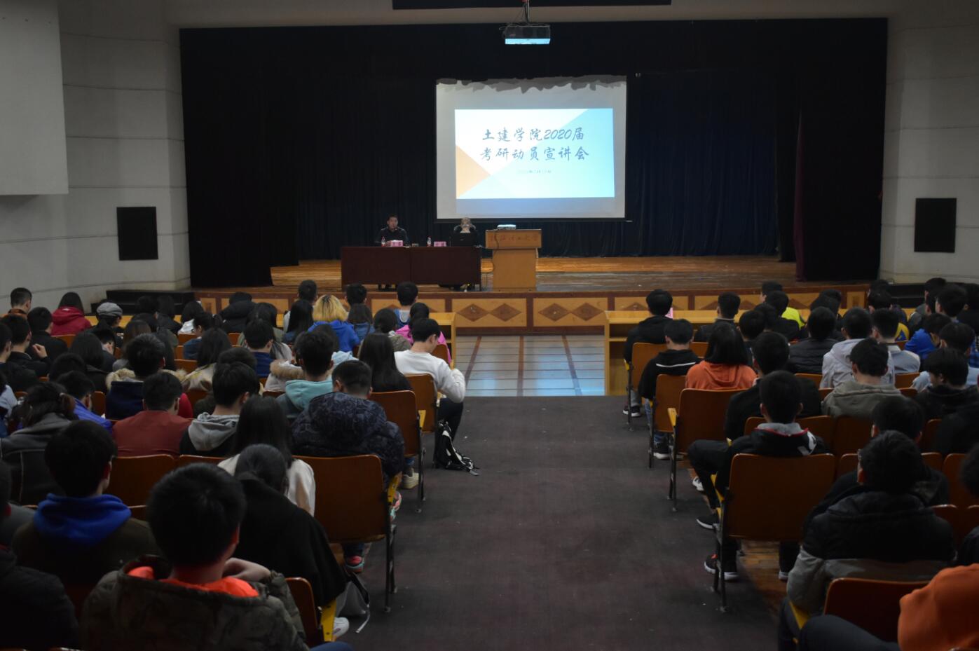 3月19日下午15:00,应学院邀请,学校研究生院金峰副院长、刘耀明老师、学院研究生学生会副主席余大鹏在屏风校区南礼堂二楼开展2020届考研动员宣讲会,宣讲会由太阳成集团122ccvip副书记王盛主持,年级辅导员李俊俊以及2015级城乡规划、2015级建筑学、2016级土木工程、2016级工程管理四个专业共计540人参加。