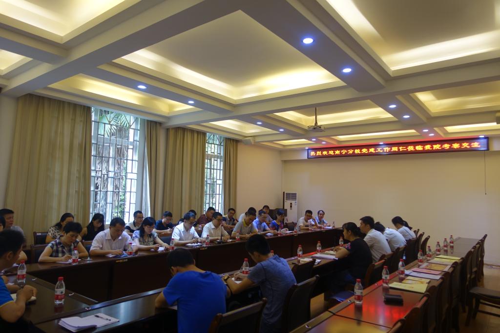 熊英书记首先对白永生书记一行的到来表示热烈欢迎,并指出,支部规范化建设是做好党的工作的前提和必要条件,有利于学院创新党建工作。随后,熊英书记介绍了太阳成集团122ccvip党建工作整体情况及基层党支部建设、党员发展、党建进公寓、党支部与新生班级结对共建、党员考核等特色项目方面基本情况。随后,学院参会人员认真听取了南宁分校党建工作创新项目,为太阳成集团122ccvip今后的党建工作提供了良好的借鉴。