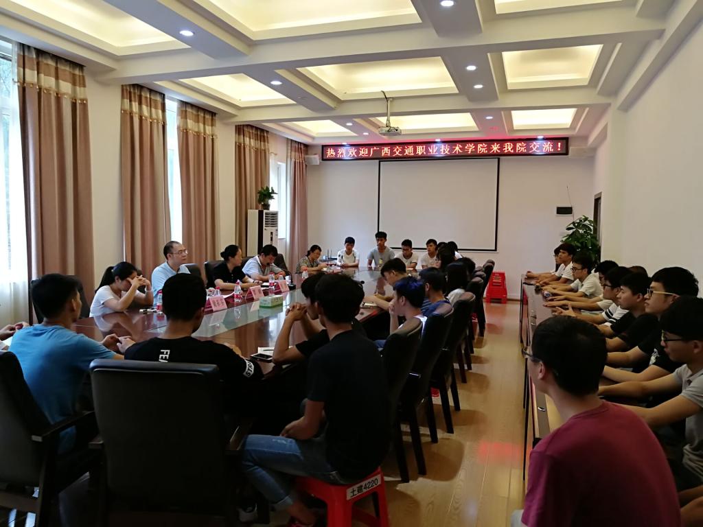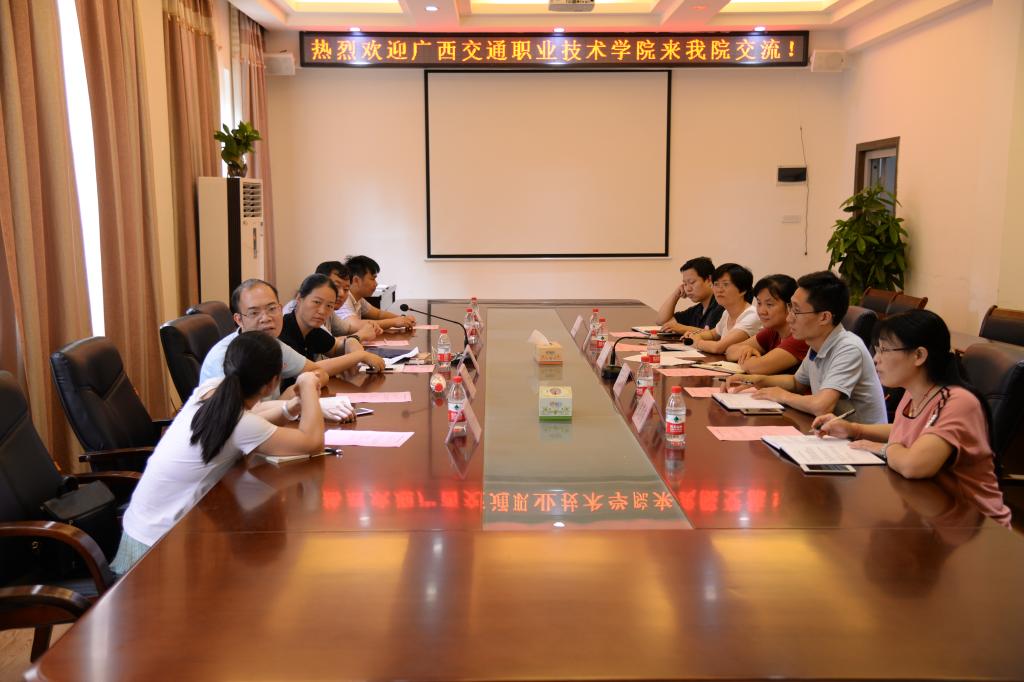 2017年6月22日下午,广西交通职业技术学院路桥工程系副主任黎群、覃峰一行五人来学院交流,太阳成集团122ccvip书记熊英、学院副院长余文成、道桥教研室副主任卢春玲、学院教学秘书和辅导员等与来访客人在屏风校区4222会议室进行了座谈交流。