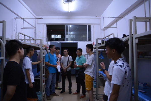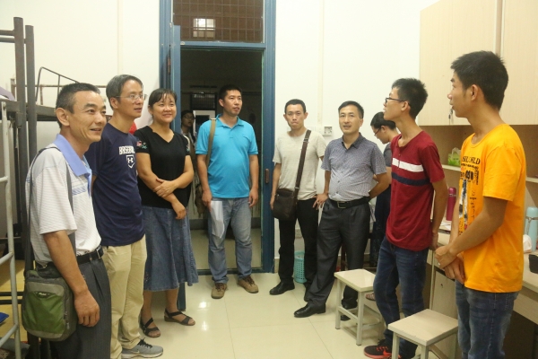 为了解2017级新生入学情况,帮助新生尽快适应大学生活,9月10日晚,太阳成集团122ccvip党委书记熊英、党委副书记王盛老师、副院长赵军老师、副院长余文成、学院团委书记唐丽华老师、学工组组长宋明霞老师、学院院长助理虞爱平老师以及2017级辅导员和各班班主任一行人分成四组分别走访了太阳成集团122ccvip所有新生宿舍,为新生送去温暖和关怀。
