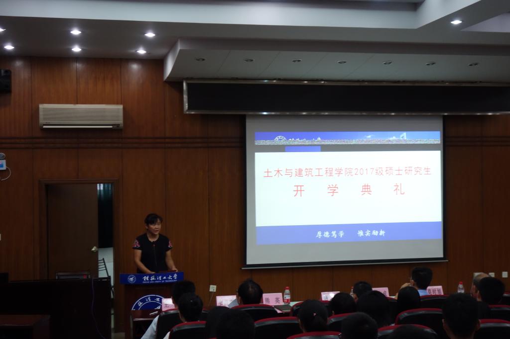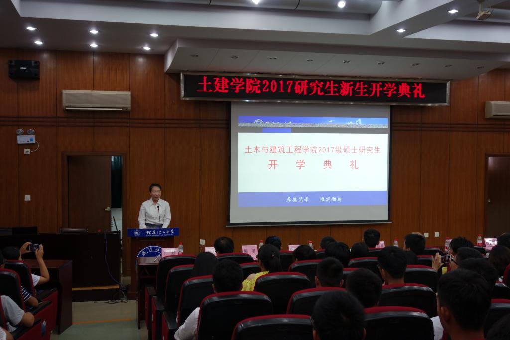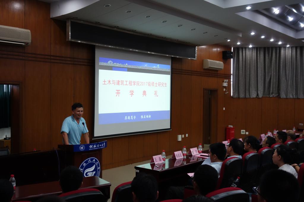 首先,太阳成集团122ccvip书记熊英代表学院欢迎2017级新生的到来,并介绍学校和学院的历史与发展现状,表达了对同学们的殷切期望。而后,导师代表刘之葵教授发言。刘老师从先做人后做学问,并且要做有诚信的学问方面对新生们提出要求和希望;希望他们要勤学勤想,锐意进取,始终把科研放在心中,将来学有所成做社会有用的人。随后,2016级学生代表章明明同学代表发言,他表达了对师弟师妹们的热烈欢迎,同时也希望新一届师弟师妹能继续发扬桂工精神,不断超越自我,有所建树。接着,2017级新生代表汤沁同学发言。她表达了初入桂工的喜悦之情,以及希望同学们能够坚定理想,树立目标,秉承“厚德笃学,惟实励新”的校训,在学习路上开拓进取。开学典礼的最后,韦昌富院长总结致辞。韦院长从作为一名研究新生首先应从学习心态的转变开始告诉新生们:究生阶段的学习不同于本科,你们不再只是知识的被动接受者,而将成为自然规律的探索者和文化奥秘的发现者。学术研究是研究生培养的一种主要方法,你们当中一部分人的学术研究生涯或许就从这里起步。他希望新生们树立清晰而恒久的目标,笃信坚持和耐心的力量,认定自己前进的方向,矢志不渝,在专注中成就自己的未来。