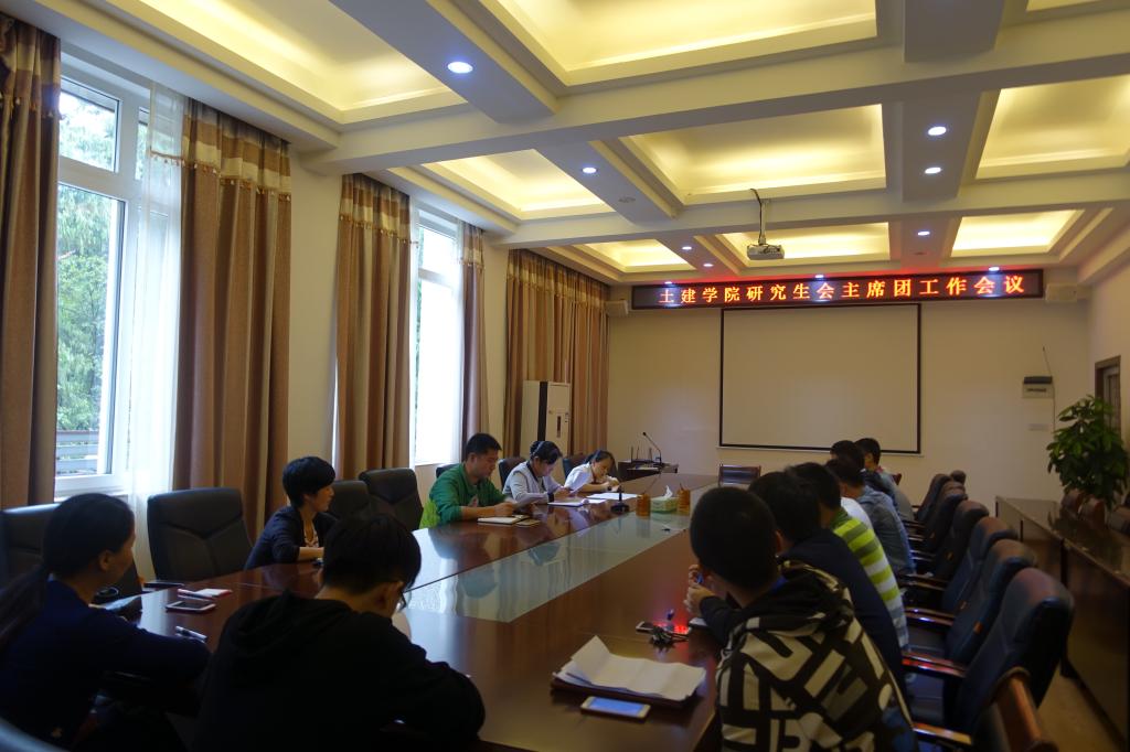 10月20日下午,学院研究生会主席团于4226会议室召开工作会议。太阳成集团122ccvip书记熊英、党委副书记王盛、辅导员唐丽华、教学秘书王国燕以及2017年研究生会主席团成员、各部长参加会议。