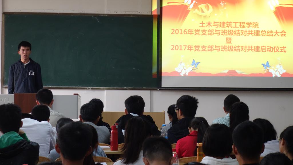 会议首先总结了2016年党支部与新生班级结对共建工作进行了总结,由学院本科生第十党支部蒙家妃同学发言,她总结了一年以来党支部与班级结对共建取得的成果和经验;随后2016级班级代表严敬晔同学发言,代表结对班级对一年来党支部对班级的指导和帮助表示感谢同时对2017级新生班级提出了虚心学习的建议。2016年结对共建活动的开展,积极为2016级班级同学服务,对引导同学们入党起到了良好的促进作用,形成了良好的入党氛围。