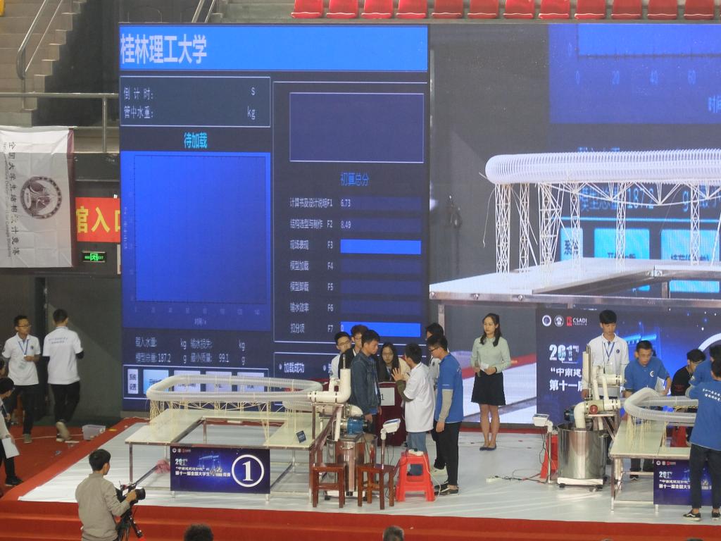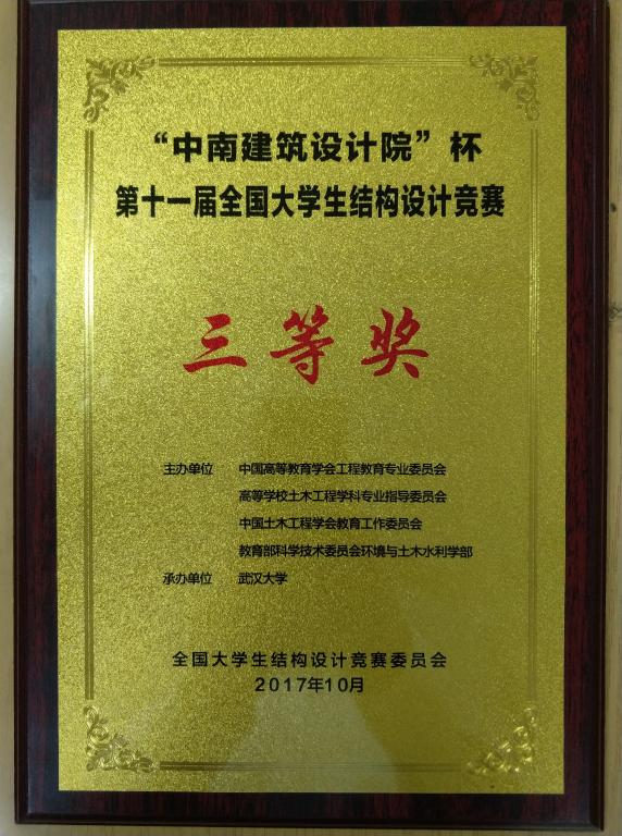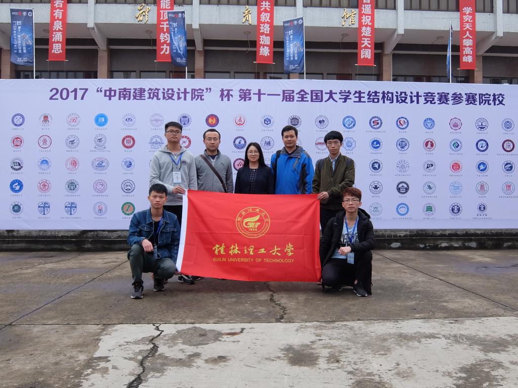 10月19日至22日,由全国高等教育学会工程教育专业委员会、高等学校土木工程学科专业指导委员会、中国土木工程学会教育工作委员会和教育部科学技术委员会环境与土木水利学部共同主办,武汉大学承办的2017年“中南建筑设计院杯”第十一届全国大学生结构设计竞赛顺利举行。为期4天的赛事中,共有包括清华大学、哈尔滨工业大学、同济大学在内的107所高校, 108支竞赛队伍共计700余师生参加。本次竞赛的难度较大,模型加载成功的仅有60支队伍,包括清华大学、武汉大学在内的众多名校的模型加载均失败。太阳成集团122ccvip2015级学生梁富源、蔡鸣、覃云超组成的代表队在张研、李琦、李红豫老师的精心指导下,吸取以往的设计制作经验,勇于创新并积极尝试,最终设计作品凭借合理的结构体系、稳定的结构受力性能以及精良的做工,经受住重重考验取得了三等奖的优异成绩,这也是此次代表广西参赛院校中获得的最好成绩。