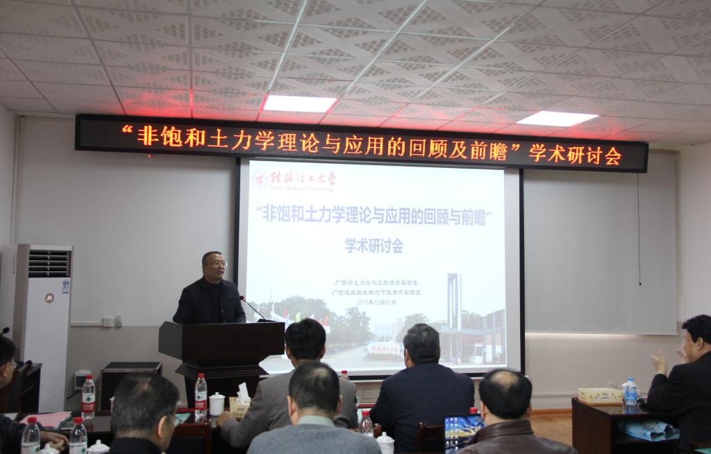 12月2日上午,由广西岩土力学与工程重点试验室和广西建筑新能源与节能重点试验室共同主办的“非饱和土力学理论与应用的回顾及前瞻”学术研讨会在我校屏风校区4203会议室举行。我校王敦球副校长出席本次会议,会议由学院院长韦昌富教授主持。学院的相关教师与研究生参加了会议,会议总人数过百人。