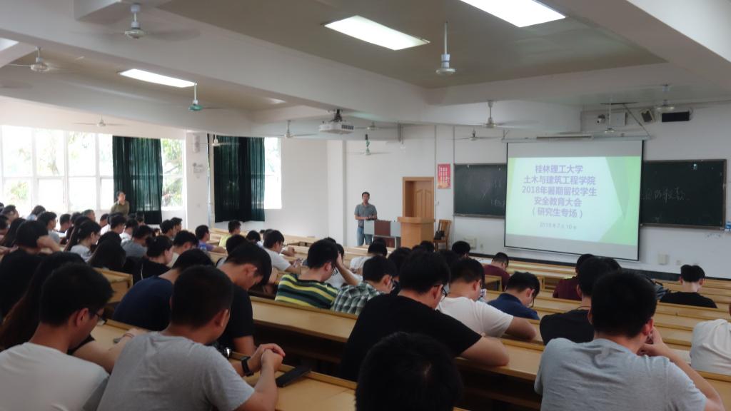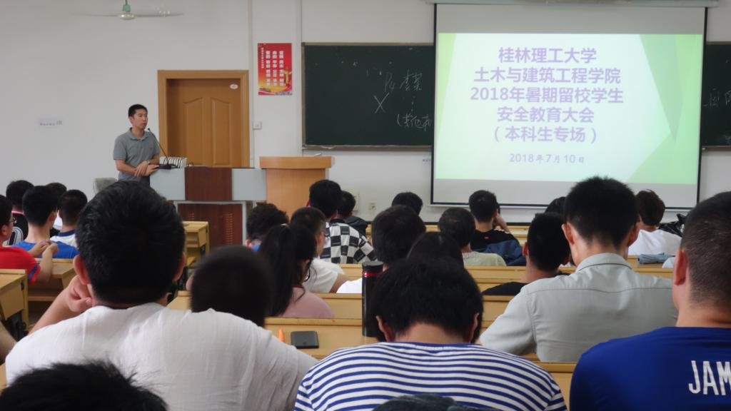 2018年7月10日上午,土木与建筑工程学院在屏风校区9301教室分别给学院研究生和本科生召开2018年暑期留校学生安全教育大会,太阳成集团122ccvip副书记王盛,及各年级相关辅导员参加了此次会议。