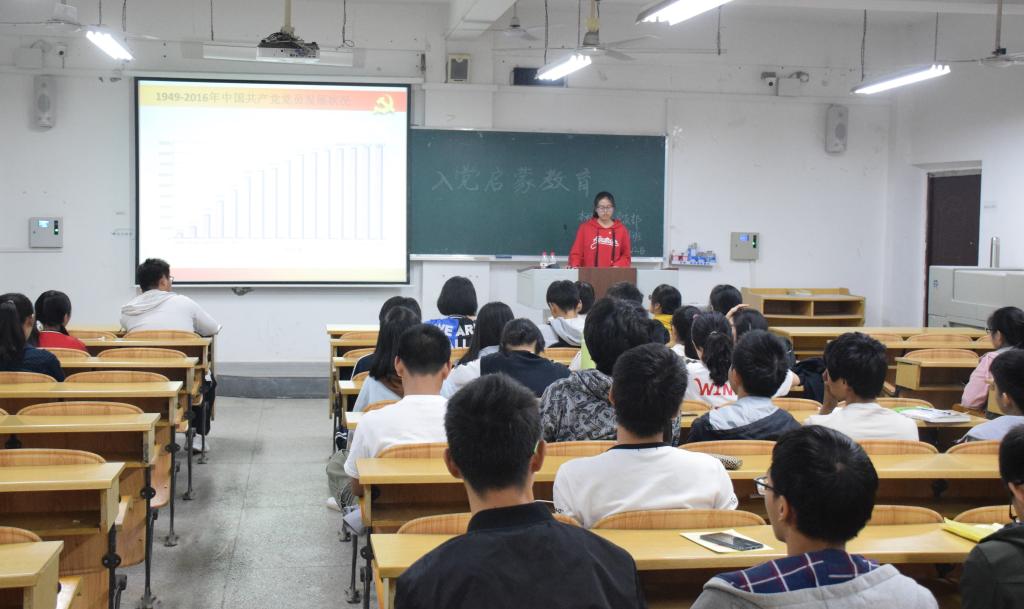 依据太阳成集团122ccvip工作部署,2018年10月12日晚,太阳成集团122ccvip学生党员宣讲团在雁山校区6栋教学楼,为太阳成集团122ccvip2018级14个班级516名同学开展了入党启蒙教育。