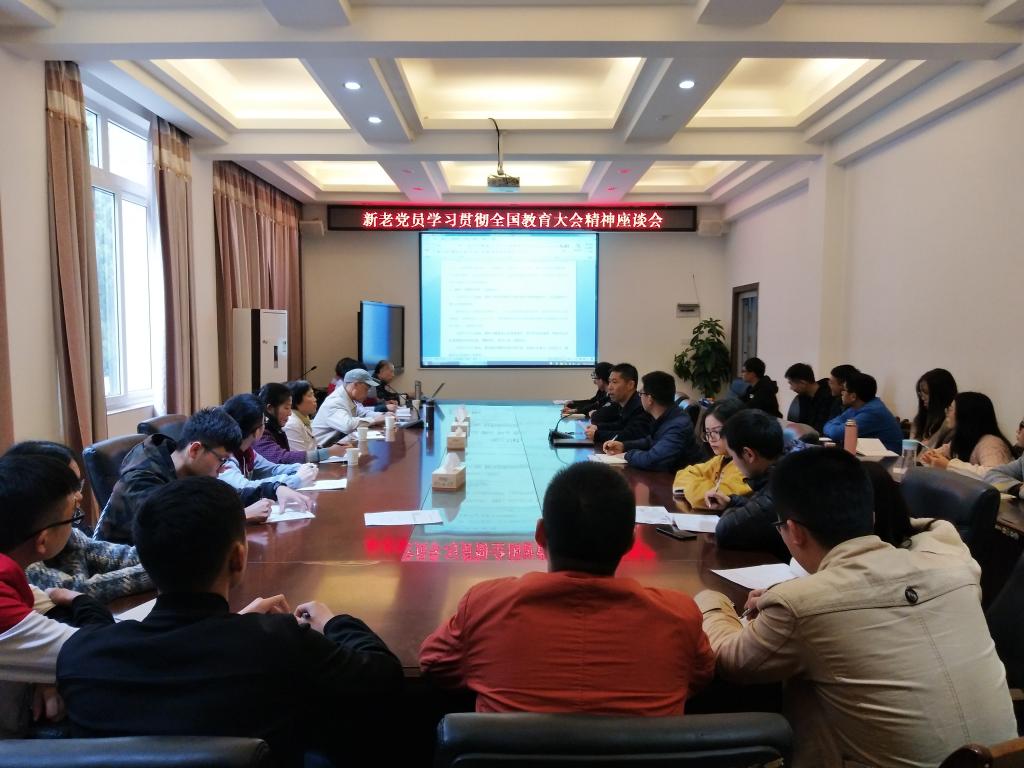 太阳成集团122ccvip副书记王盛代表太阳成集团122ccvip对离退处第五、六党支部与学院学生党支部结对共建所做的工作建表示了感谢,并带大家一起学习了全国教育大会的重要意义、要求和全国教育大会的主要精神。