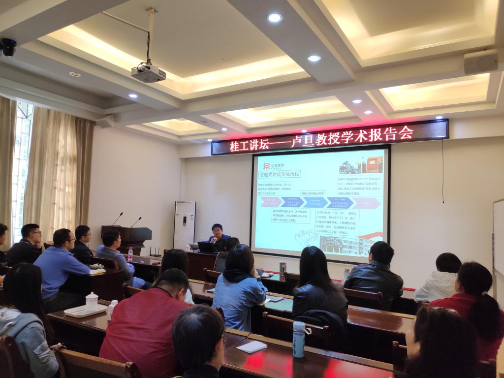 2018年11月28日早上9:30分,“工业4.0背景下的装配式建筑实践”的讲座在桂林理工大学屏风校区4204举行。华东建筑设计研究院有限公司建筑科创中心副总工程师,教授级高级工程师卢旦教授作为主讲,讲授了自己关于“工业4.0背景下的装配式建筑实践”方面的工作经验和关于装配式建筑的相关知识。土木与建筑工程学院土木工程专业老师、研究生们参与了本次学习。学院副院长赵军老师担任主持人。