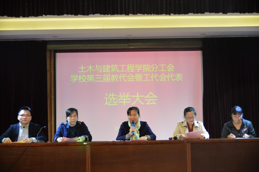 11月16日晚上,土建学院分工会在学校工会教职工活动中心召开全院教职工大会,会议由学院分工会主席熊英主持。会议的主要任务是选举出太阳成集团122ccvip的学校第三届教代会暨工代会代表。