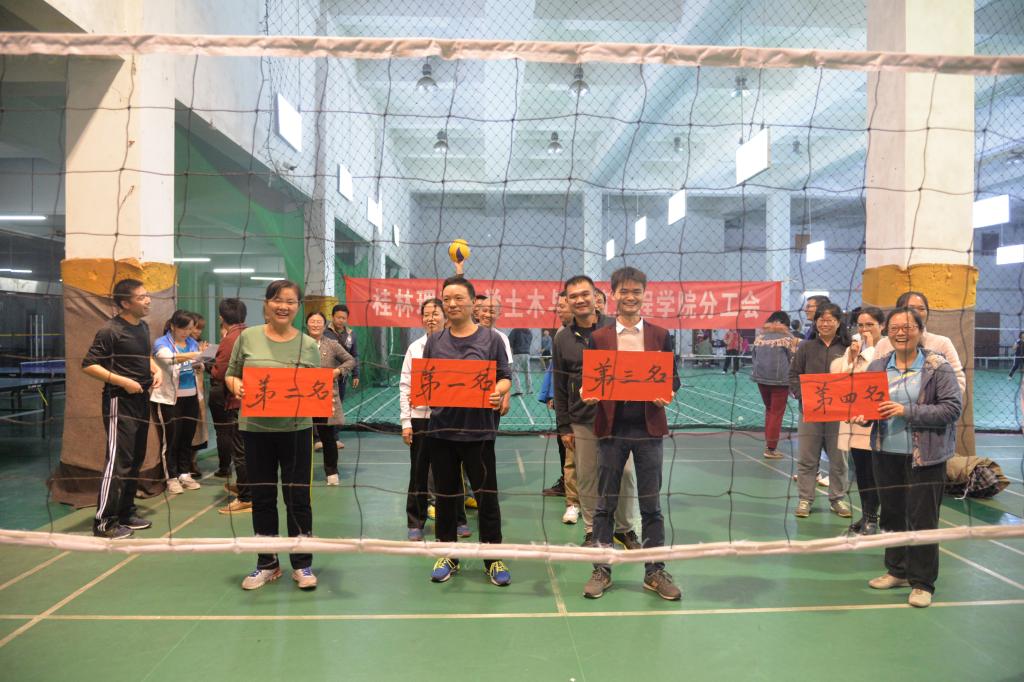 随着裁判的一声哨响,比赛正式开始。比赛中,教师们配合默契,你接我挡,你传我打,你垫我扣……场下,观看的教师们为场上的队员鼓劲、加油。场上两队队员们大力扣杀、智慧吊球、精准二传、鱼跃救球等精彩的球技不时赢得场外观众的阵阵喝彩。气排球赛在紧张、刺激、活泼、开心的氛围里圆满结束,展现了良好的体育精神和素质,同时也不断诠释着教师们团结拼搏的精神和阳光健康的魅力。通过激烈角逐,最终道桥+力学教研室获得第一名,院办+学工办获得第二名,工程管理教研室获得第三名。