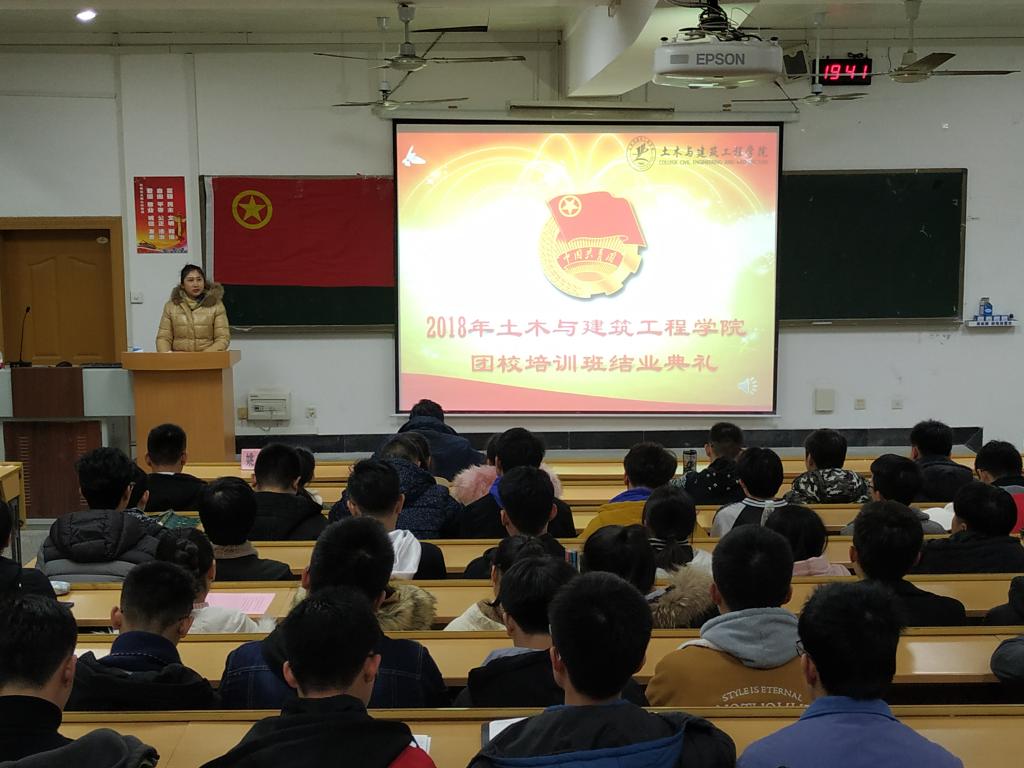 12月14日晚19:00,土木与建筑工程学院在屏风校区9301教室举行了2018年秋季学期团校培训班结业典礼。太阳成集团122ccvip团委书记姚慧老师,17级辅导员马文硕老师以及2018年秋季学期团校培训班全体学员出席了本次结业典礼。