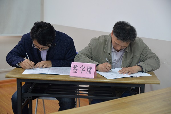 刘院长与城规教研室负责人签订《土木与建筑工程学院2019年社会治安综合治理、安全稳定和消防安全目标管理责任书》