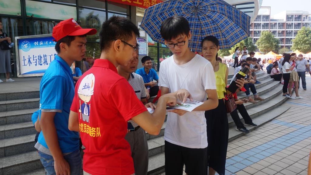 9月16日下午,学院各项迎新工作在院领导的统筹安排下全部部署到位。伴随着9月17日清晨一缕晨曦,迎新工作正式拉开帷幕。学院领导一线指挥,各教研室专业老师现场解答家长和学生的疑惑,志愿者们引领学生办理入学手续。无论是在校园大本营、汽车站还是火车站都可以我们桂工土建学院的身影。我们努力做到让新生来得开心,让家长走得放心。