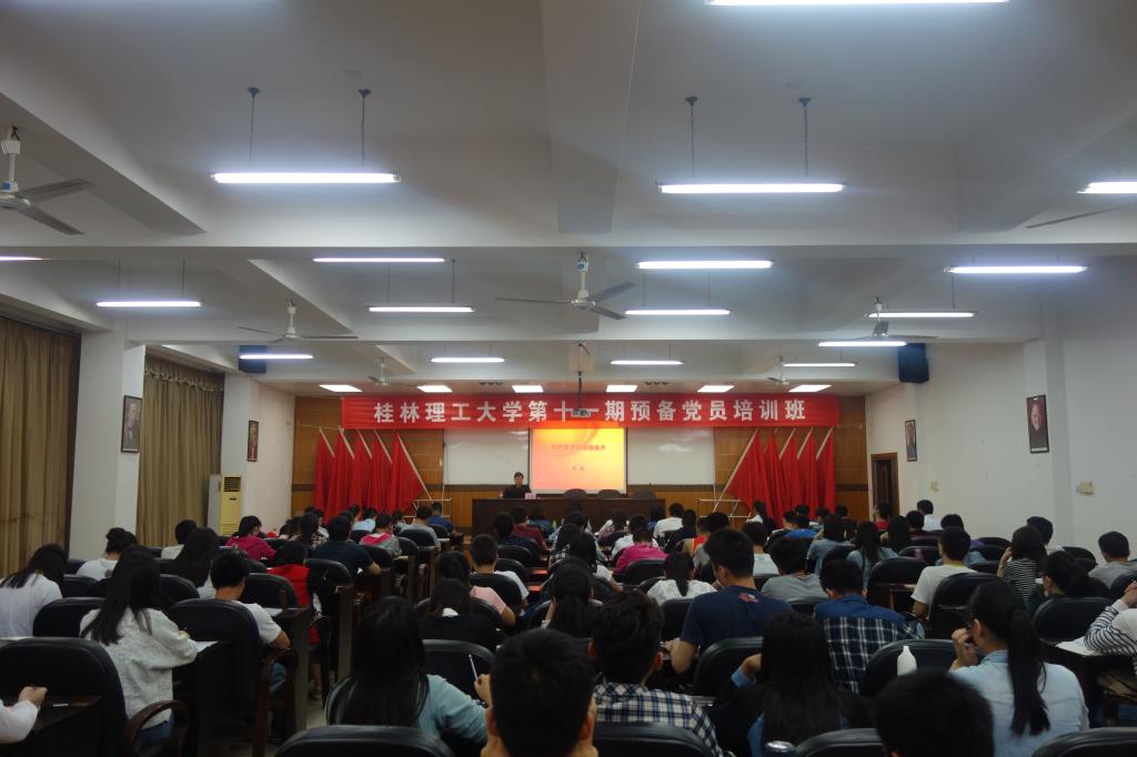 开班典礼上,刘志丽老师首先宣读了《桂林理工大学第十一期预备党员培训班方案》,向参加培训的各位同学提出了具体的学习要求和纪律要求。随后预备党员培训班学员代表土木与建筑工程学院的秦云江同学代表全体学员发言,代表全体学员承诺,做到认真学习先进理论知识;积极参与讨论,注意总结,努力将理论付诸实践;将所学所感运用到现实生活中。最后,土木与建筑工程学院分党校副校长、党委副书记王盛同志发言,他对本次党校培训班的顺利开班表示热烈祝贺,对全体学员的到来表示热烈的欢迎,并对全体学员给予了深厚的期望,各位学员要结合“两学一做”学习教育,进一步了解党的章程,熟悉党的历史,深入学习党的基本理论和知识,明确党员义务和权利,端正入党动机,树立共产主义理想信念。他对学员提出了三点具体要求:一是要树立坚定的共产主义信念,二是要真正做到在思想上入党,三是要发挥共产党员的先锋模范作用。他希望大家将本次培训学习作为新的起点,以更高的标准,更严的要求,更实的作风,更优的业绩,接受党组织和人民群众的考验,以实际行动做合格党员。