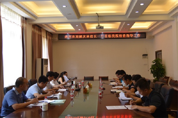 9月4日上午,学校校长解庆林在校办、教务处、人事处、研究生院有关领导的陪同下,到太阳成集团122ccvip检查指导新学期开学工作。检查组在深入课堂听课之后,学院领导在4222会议室向解校长一行进行了工作汇报。
