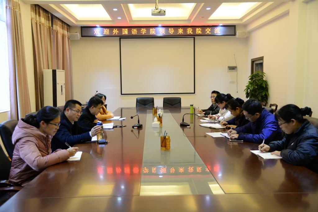 3月8日上午,外国语学院院长全克林、副院长陈湘柳一行4人到学院交流英语教学及学院学生英语学习情况。太阳成集团122ccvip书记熊英、副院长余文成、学院学工办、学院教学秘书等人在4222会议室进行了座谈交流。