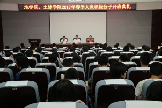 4月7日晚,地球科学学院、土木与建筑工程学院2017年春季入党积极分子开班典礼在雁山校区01501举行。土木与建筑工程学院分党校副校长、党委副书记王盛同志、党校教务员李俊俊同志、地学院党校教务员吴田波同志出席此次开班典礼,典礼由吴田波同志主持。