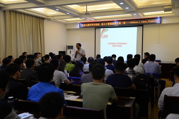 上午,Ning Lu教授向师生们介绍了近年来非饱和土力学中的一些研究进展与成果,让大家更深入了解非饱和土的相关知识。随后,William J. Likos教授作了题为“Emerging Materials in Geoenvironmental Engineering: Polymer-Modified Bentonite”的学术报告,报告会上他从聚合物膨润土的特性、聚合物含量的重要性以及聚合物膨润土的概念模型等方面对聚合物改良膨润土进行了详细的介绍和分析。