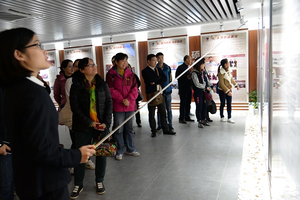到达雁山校区后,首先进行参观学校六十周年回顾展展馆活动。学校六十周年回顾展展馆设在图书馆七楼,展馆从历史沿革、亲切关怀、发展脉络、历任领导、改革开放借势腾飞、转型升级 成绩卓著、成功两申 高歌猛进、人才队伍建设、学科专业建设、教学改革与人才培养等板块展示了我校发展历程。在学生讲解员的引领下,老师们一一回顾了学校的发展历程,回顾了桂工人艰苦奋斗、勇于创新的实践过程,学校所取得的显著成绩,学校蒸蒸日上的发展让桂工人为之自豪!为之骄傲!