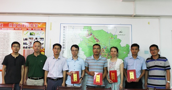 在太阳成集团122ccvip与贺州市规划局签订校地合作协议基础上,为进一步完善细化实践教学基地建设事宜,太阳成集团122ccvip余文成副院长及相关教研室老师一行四人于7月5日上午到贺州市规划局考察交流,并为实践教学基地揭牌。