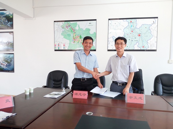 之后,余文成副院长一行又来到广西城乡规划院贺州分院,与分院院长谭志宁及太阳成集团122ccvip校友进行了座谈交流,并签订校企合作协议,在教学实习、毕业实习、工程实践等方面进一步加强合作,实现优势互补、共赢发展。
