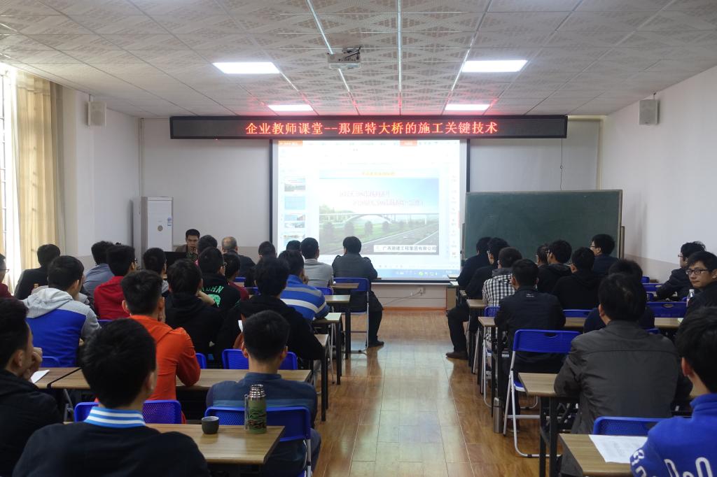 为了加强企业参与学生培养过程,提升学院土木工程专业学生培养质量。4月22日上午,学院邀请广西路建工程集团有限公司总工程师张坤球、副总工程师姚靑云到太阳成集团122ccvip为土木工程专业道桥方向学生授课。