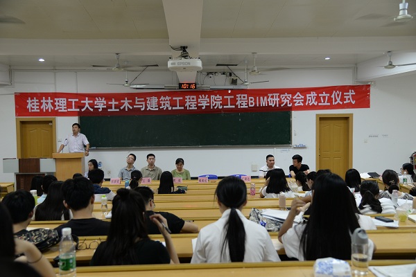 2017年6月26日,桂林理工大学土木与建筑学院BIM研究社团成立大会在九栋301教室成功举办。土建学院书记熊英、副书记王盛、工程管理教研室全体教师,以及合作企业代表广联达科技股份有限公司广西区杨总、广西火天信工程管理咨询有限公司李总等有出席了此次大会,大会由工程管理教研室主任邓康成老师主持。