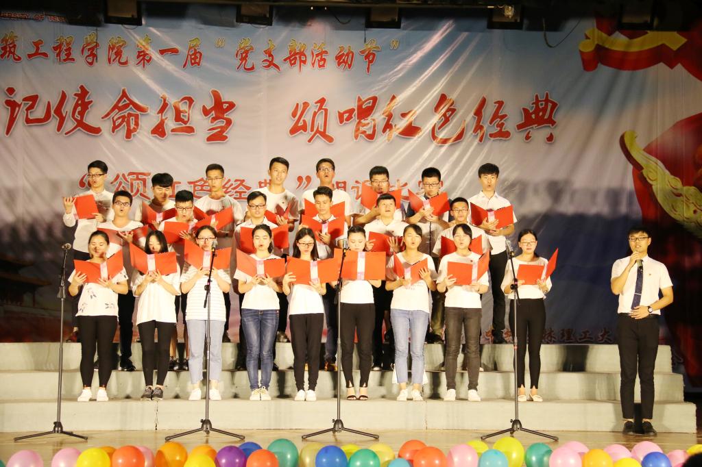 为庆祝中国共产党建党97周年纪念日的来临,引领全院师生党员以更加昂扬的姿态和风貌推进学院党的建设,进一步增强党性意识,坚定理想信念,牢记使命担当,6月29日晚,太阳成集团122ccvip党委在屏风校区南校区礼堂组织开展了“庆七一”红色经典诵唱比赛。这次活动是太阳成集团122ccvip第一届“党支部活动节”中“颂红色经典”朗诵比赛和“唱红色旋律”合唱比赛的合二为一,此次活动由本科生第一、三、四、五支部和研究生第一、四支部等6个支部联合承办,学院12个师生支部党员及部分入党积极分子代表约300多人展开了激烈的同台竞技。学院特别邀请离退处、学工(部)处、马克思主义学院教师,以及太阳成集团122ccvip民主党派和党外人士代表担任此次比赛评委。