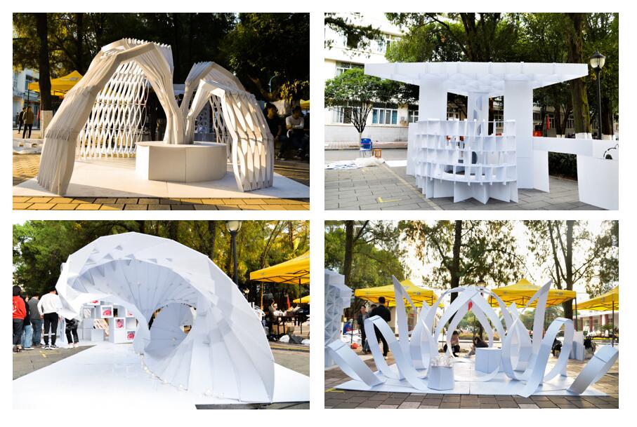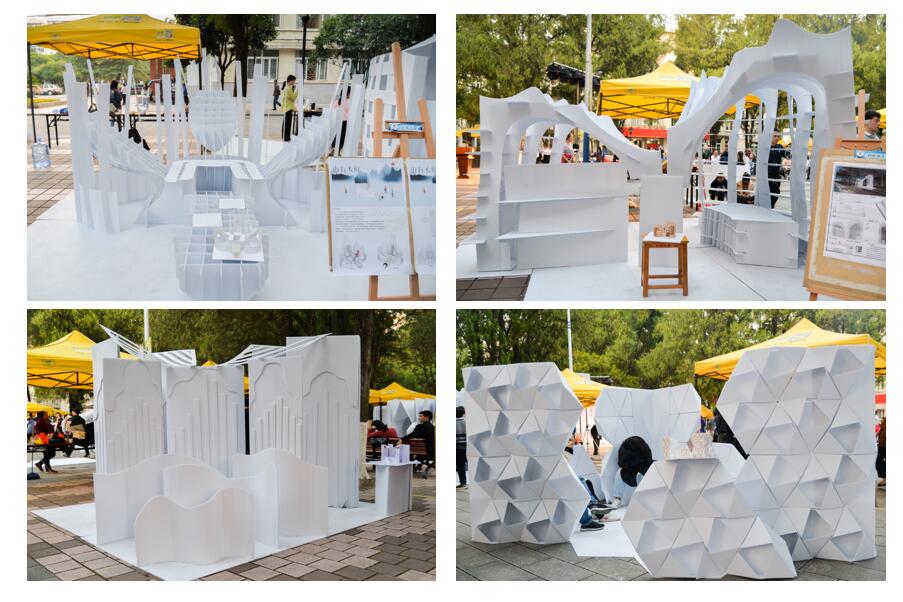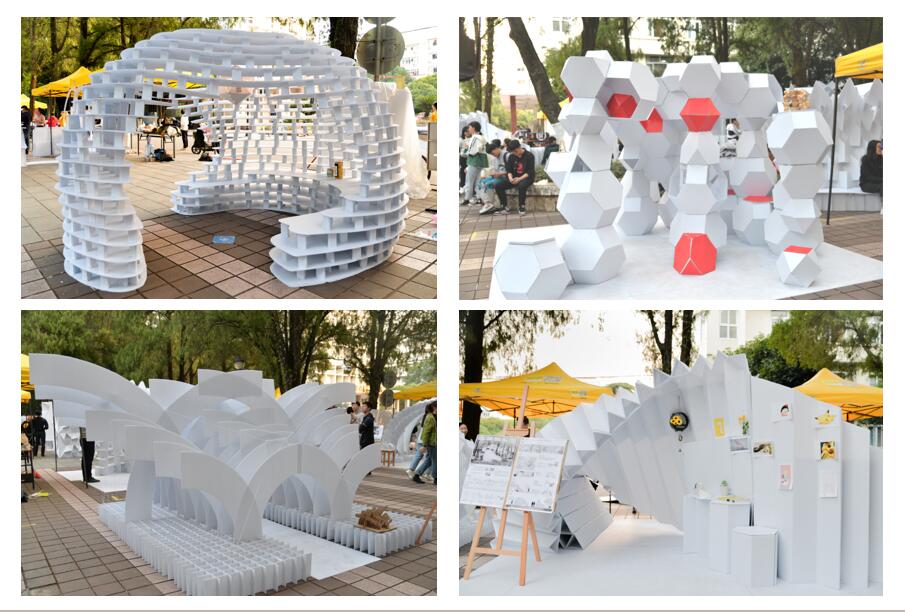 11月23日,由我校主办,太阳成集团122ccvip和教务处共同承办,国际教育学院、旅游与风景园林学院、艺术学院协办的桂林理工大学第一届建造节暨2019年“城市客厅”塑料中空板建筑设计与建造竞赛在屏风校区教四楼前广场顺利举行。