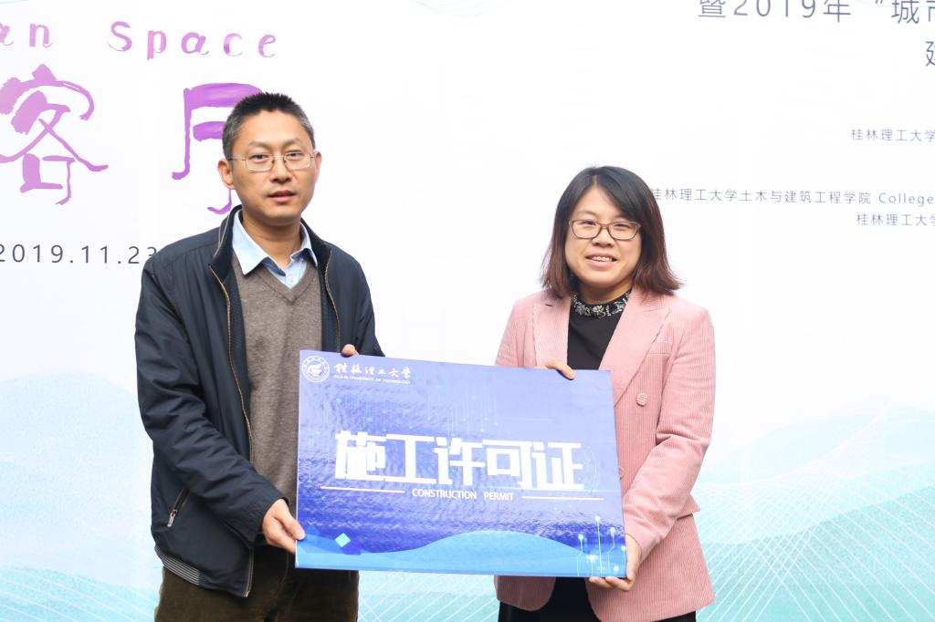 教务处副处长康志强向建造节承办单位代表李季主任颁发施工许可证