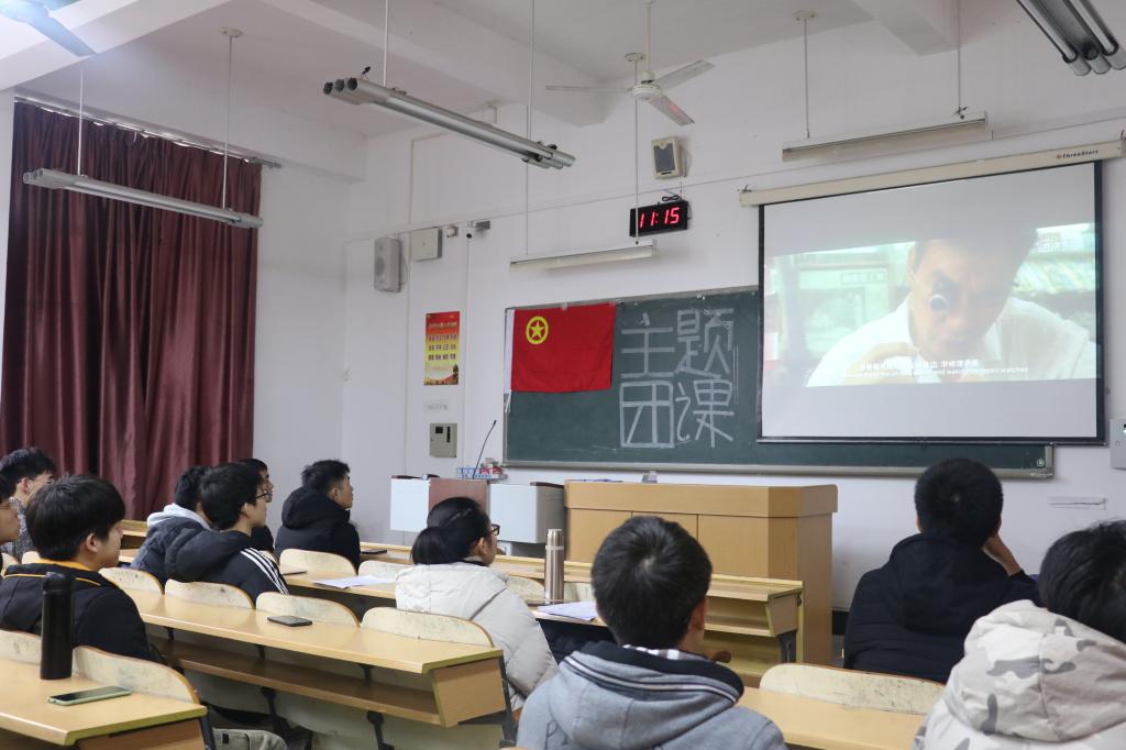 主题团课——支部团员正在认真观看《我和我的祖国》中的《回归》片段