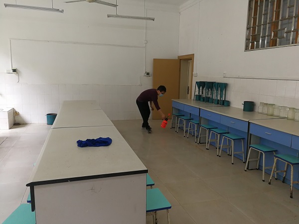 疫情就是命令,防控就是责任。为贯彻落实好学校疫情防控总体部署,落实落细开学准备工作,确保2020年春季学期顺利开学。4月7日下午,太阳成集团122ccvip组织教职员工对学院办公区、学院会议室、实验室、机房、走廊、公共卫生间等区域进行了消杀工作全覆盖。
