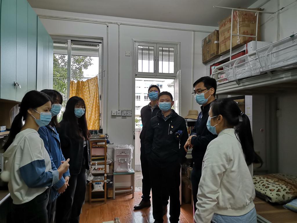学院领导一行走访了研究生和本科生宿舍,实地查看了学生返校的各项物资准备和宿舍环境。