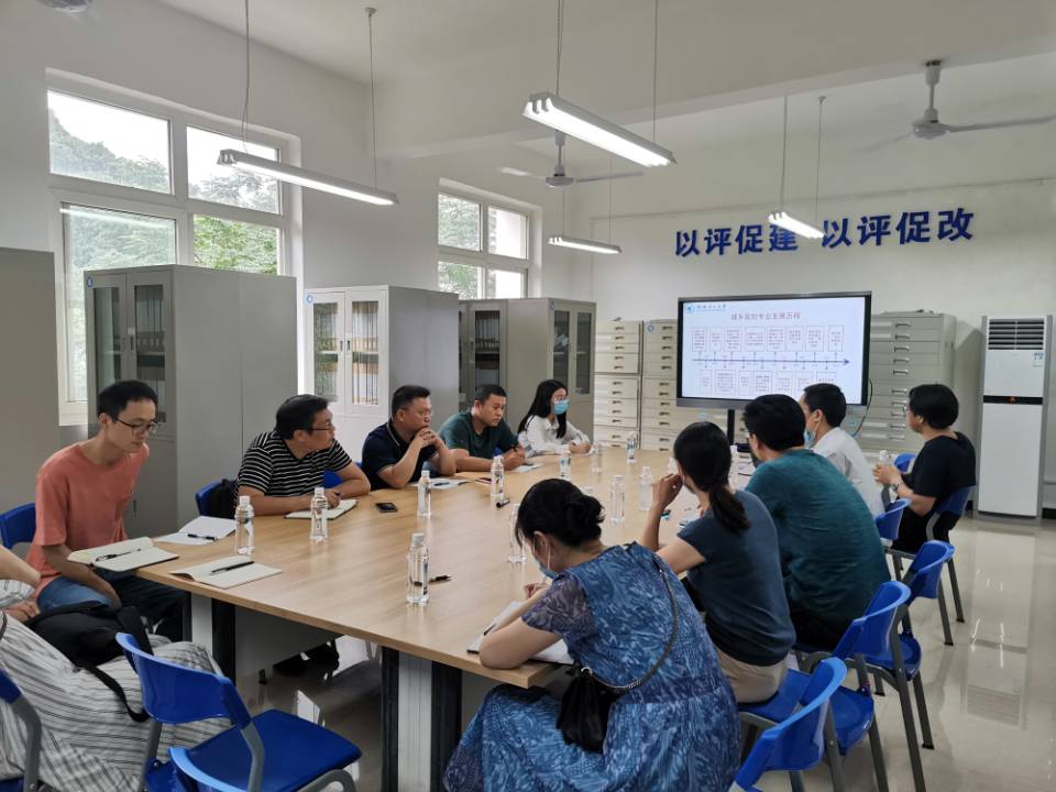 6月28日上午,我校教务处处长游少鸿、副处长唐国强携教务处一行工作人员到太阳成集团122ccvip展开专业建设调研。此次调研主要目的是考查城乡规划专业2021年专业评估中期检查准备情况,对专业建设现存问题和困难需求进行了解。学院主持工作副院长张树光、副院长余文成、副院长邓春凤、城乡规划专业负责人和部分专业教师参加此次调研活动。