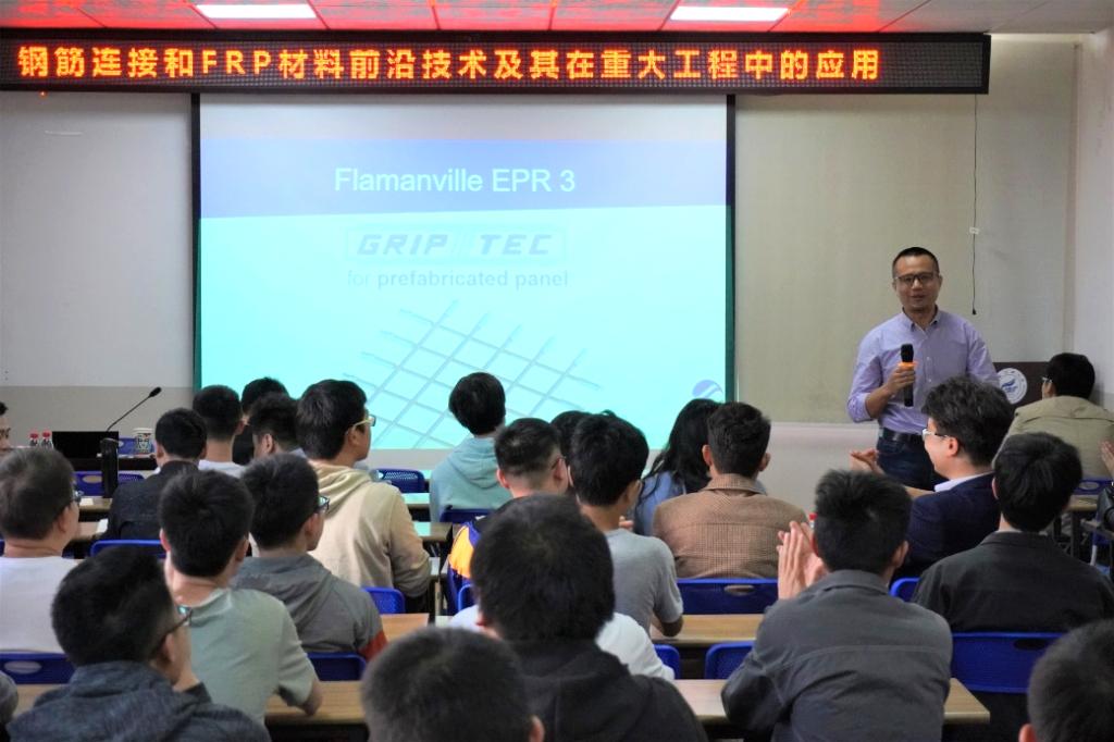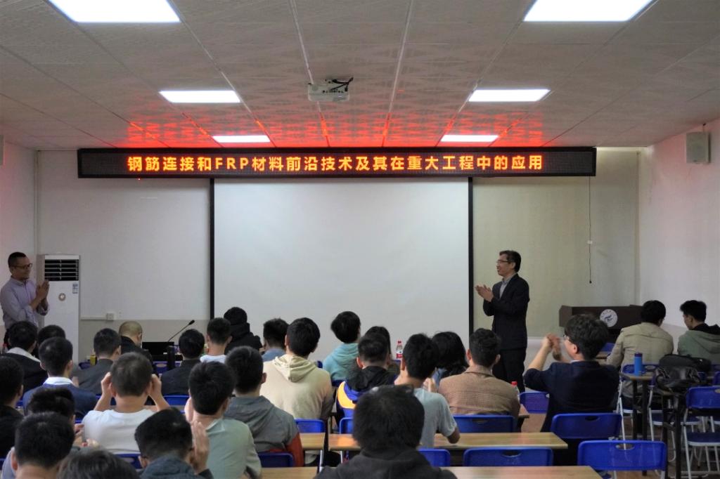 11月13日下午,德士达集团(外企)德士达建材(广东)有限公司中国区钟庆明经理在太阳成集团122ccvip屏风校区4203会议室进行学术交流。本场讲座主题为“钢筋连接和FRP材料前沿技术及其在重大工程中的应用”,由太阳成集团122ccvip副院长张树光老师主持,80余名学生参加此次讲座。