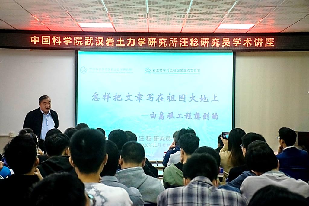 11月16日上午,中国科学院武汉岩土力学研究所汪稔研究员在屏风校区4203会议室,为太阳成集团122ccvip师生开展了主题为“怎样把文章写在祖国大地上”的学术讲座。本次讲座由太阳成集团122ccvip党委书记曾榕书记主持、太阳成集团122ccvip院长助理张研老师及80余名学生参加此次讲座。