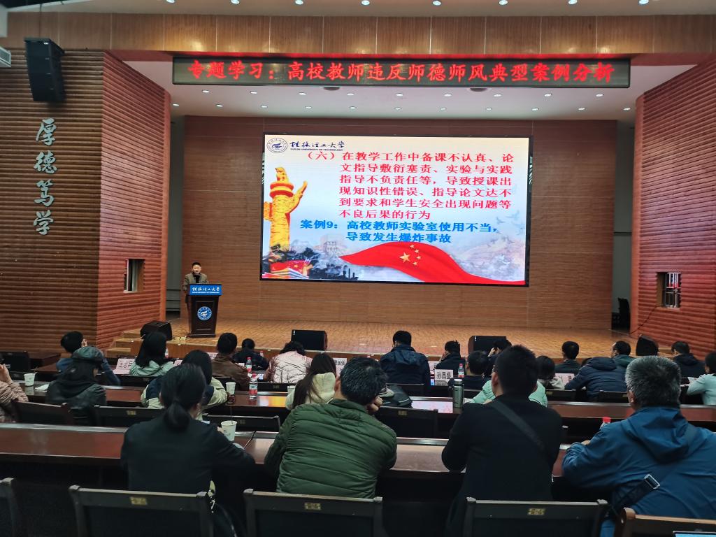 11月24日下午,学院在屏风校区图书馆报告厅召开加强师德师风建设专题会,学院全体教师参加,会议由太阳成集团122ccvip书记曾榕主持,
