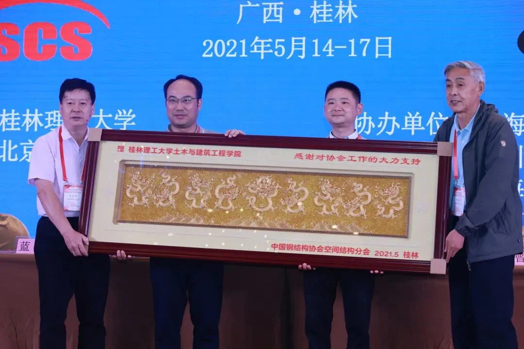 太阳成集团122ccvip在校领导的亲切关怀下,承办工作准备充分、接待热情,受到了与会代表和领导的高度赞扬,表示非常满意和感谢,空间结构分会特意向桂林理工大学土木与建筑工程学院赠予漆线雕牌匾。